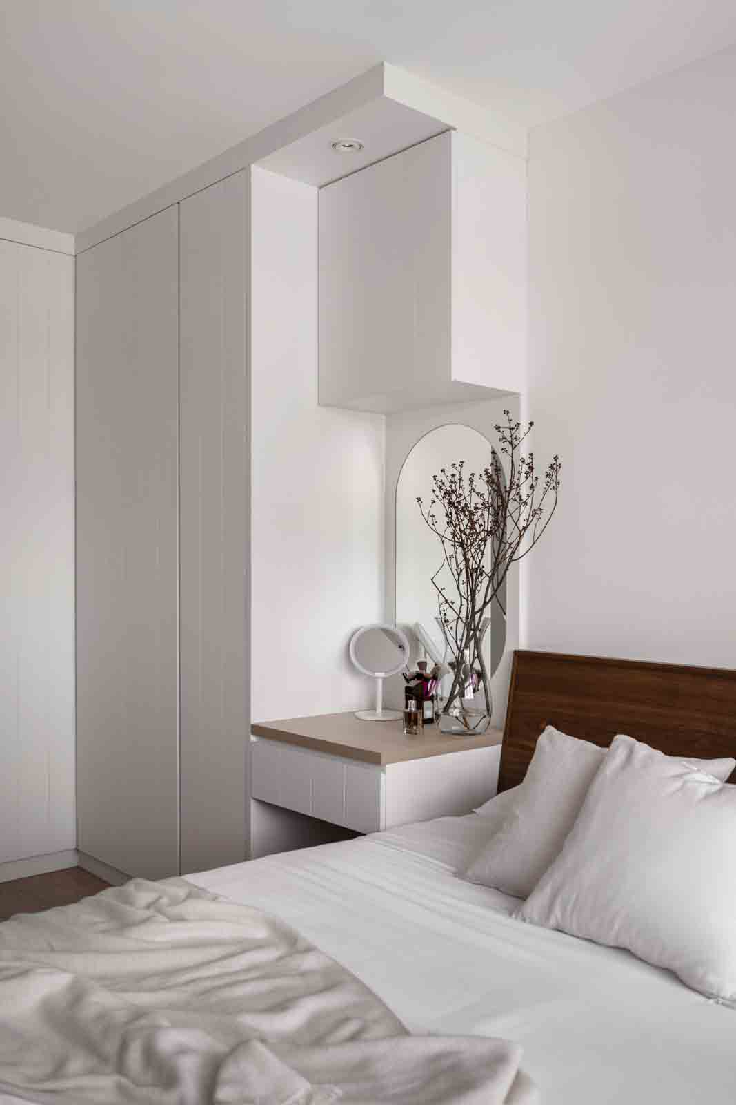 Chinese landscape art is known for its harmony with nature, and this tranquillity is ideal for the bedroom. An oriental-style screen is covered in a dream-like misty mountain paper to create a dramatic bedroom accent wall, with a palette of soft gray and blue accentuating the scheme’s peaceful attractiveness.CLASH WITH GRAPHIC PATTERNS