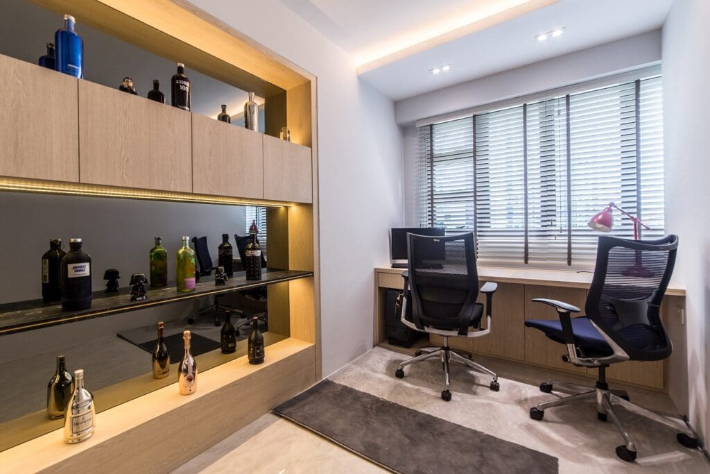 Divider panels are a great way to free up space and offer privacy at the same time. If you have a small home, this design tip will make it feel less cramped with its seamless designing. The glossy reflective divider that separates the living room from the bedroom is one style option while another would be using half glass partitioning for an open concept look or bigger appearance of your space!4. Floating Shelves For Kick Knacks