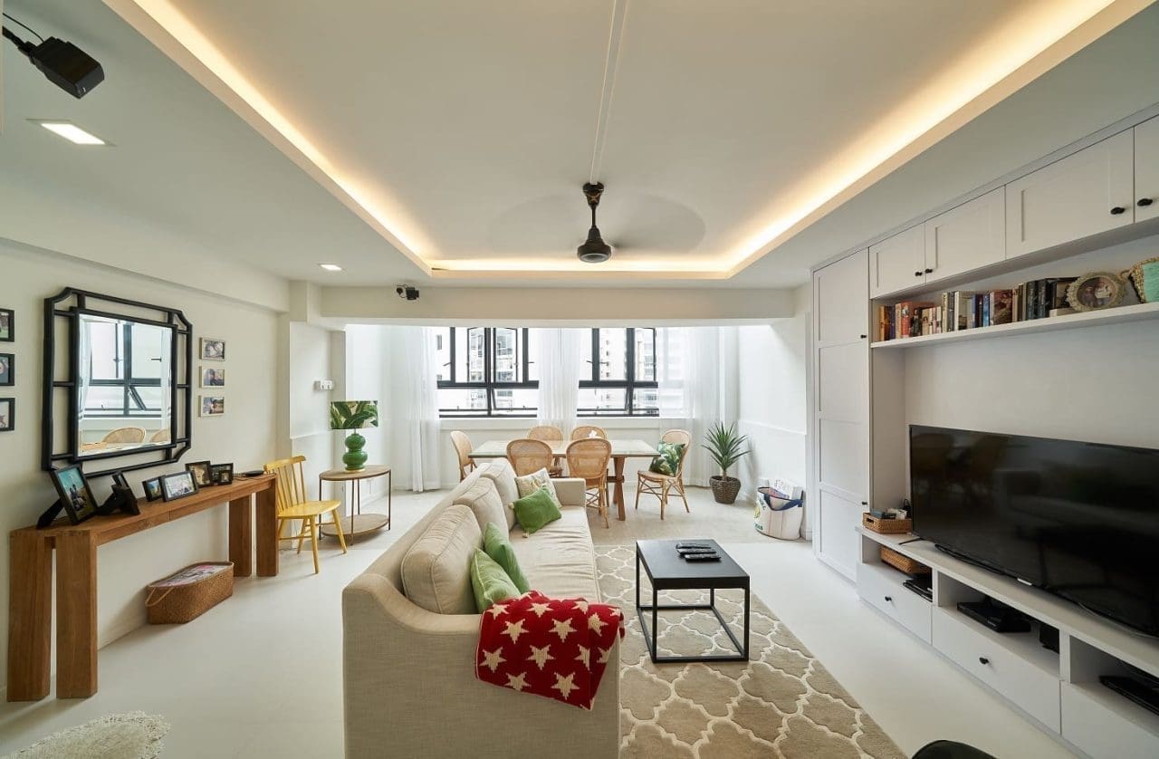 - Colorful prints for your interior decorator Singapore hung opposite each other at opposing corners make rocking out feel better than sitting still.