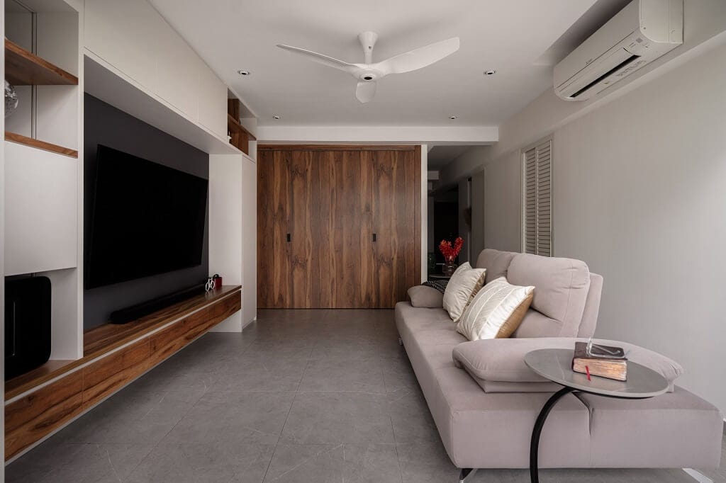 A thin line divides the rooms. Depending on the design you’re considering, the walls can be demolished or hacked. Be sure to ask for permission from HDB before making any changes.Gable-end walls